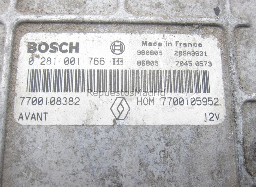 Computadora Ecu Centralita Renault 7700105952 0281001766 7700108382