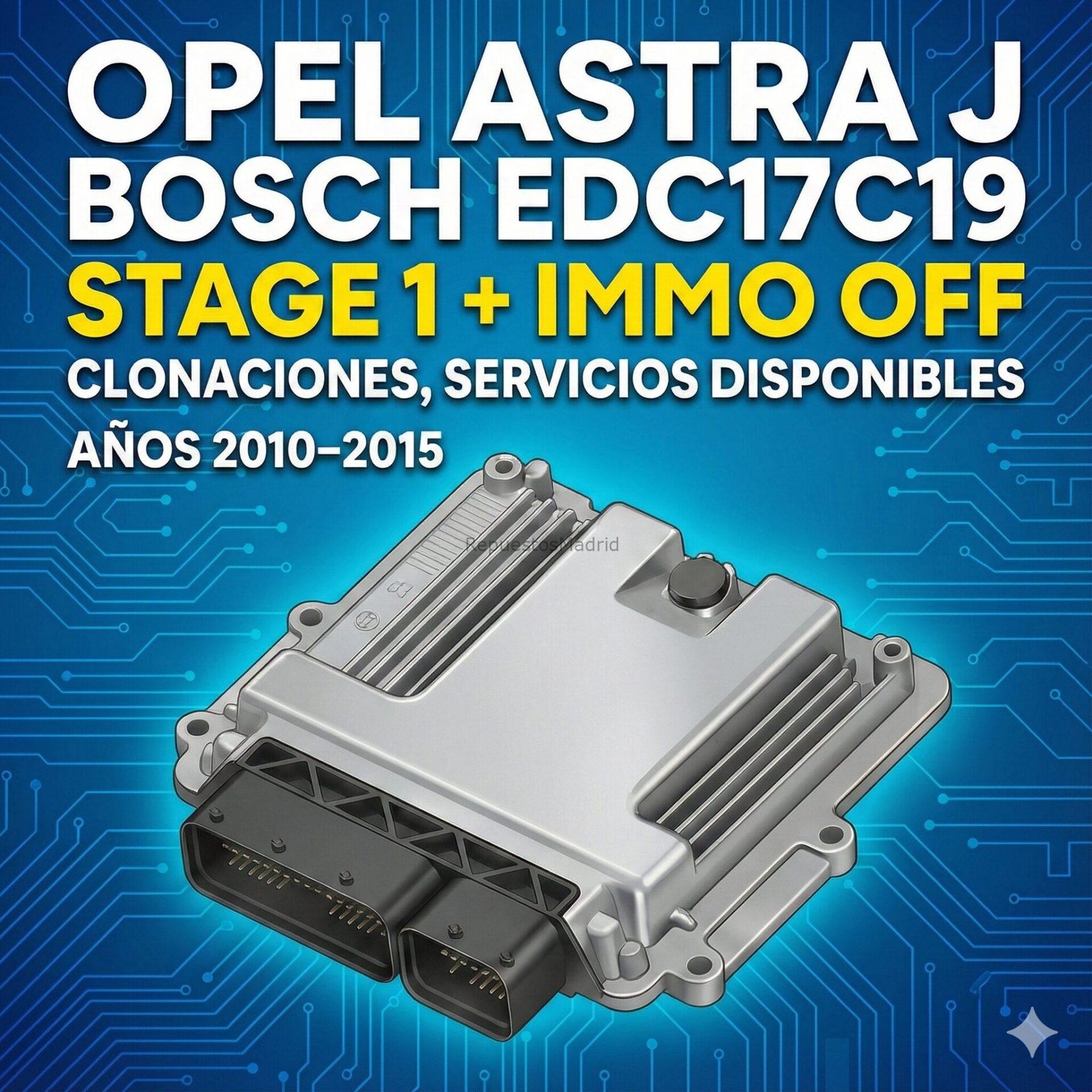 IMMO OFF, clonación y Stage 1 para Opel Astra J EDC17C19 (2010–2015). Rendimiento optimizado y arranque seguro.